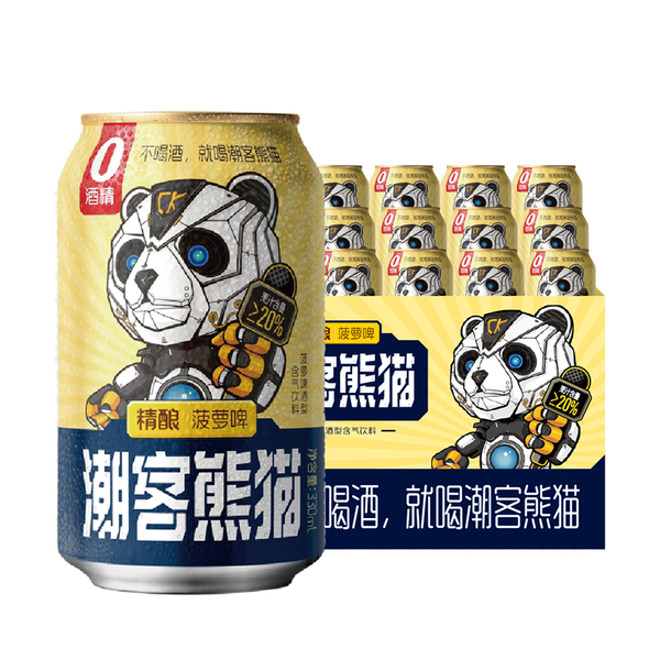 【潮客熊猫】精酿菠萝啤238ml*6罐,无醇啤酒网红高端特色果汁饮料,0酒精,果汁含量20%以上!72小时益生菌发酵,真菠萝发酵,好喝到冒泡,开车也能喝,华润万家,大润发等大型商超供货商。